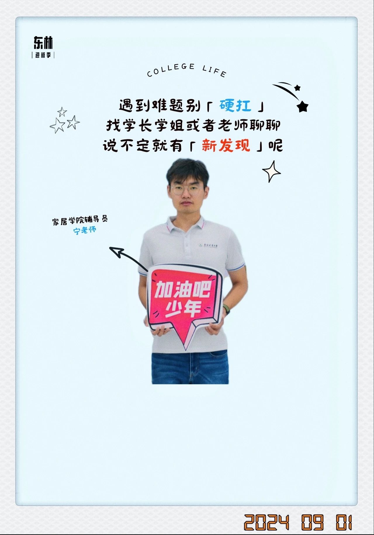 向热心的学长学姐招手
