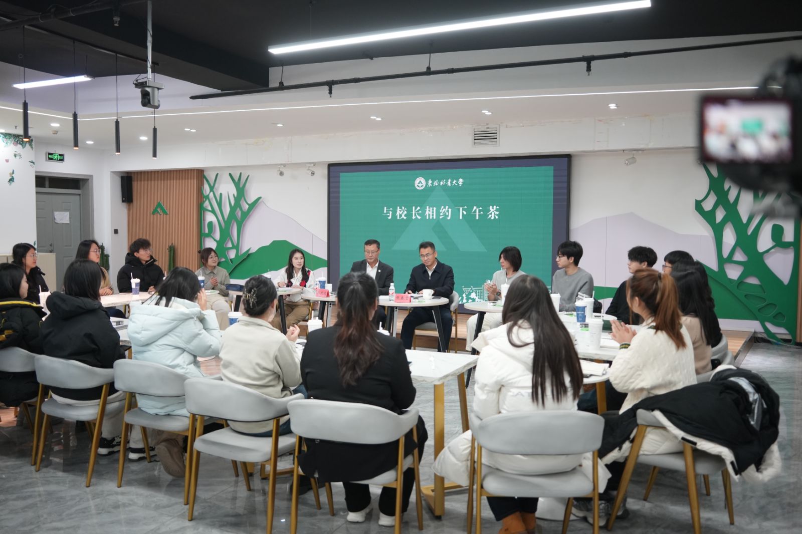 “我已经在这片沃土中走过了八年的美好时光,东林也成为我的第二故乡。”“我们在实验室里进行了许多科研和创新,不仅掌握了前沿技术,更对以后的科研路充满憧憬。”“我曾通过‘支林计划’在林区工作一年,期间,是东林精神一直激励着我为祖国林业事业贡献青春力量。”21位本硕博学生手捧热茶,争相讲述着自己在东林的成长历程和暖心故事。