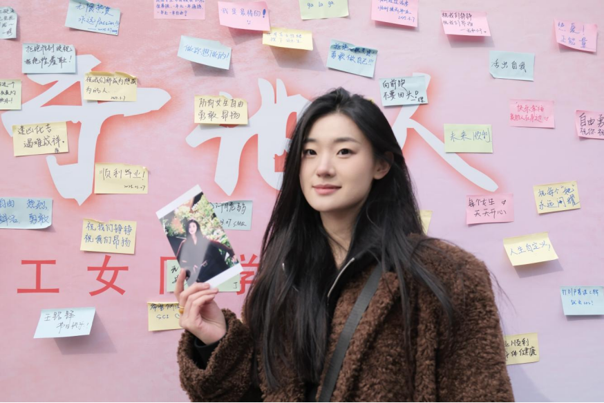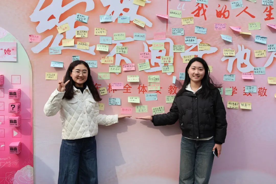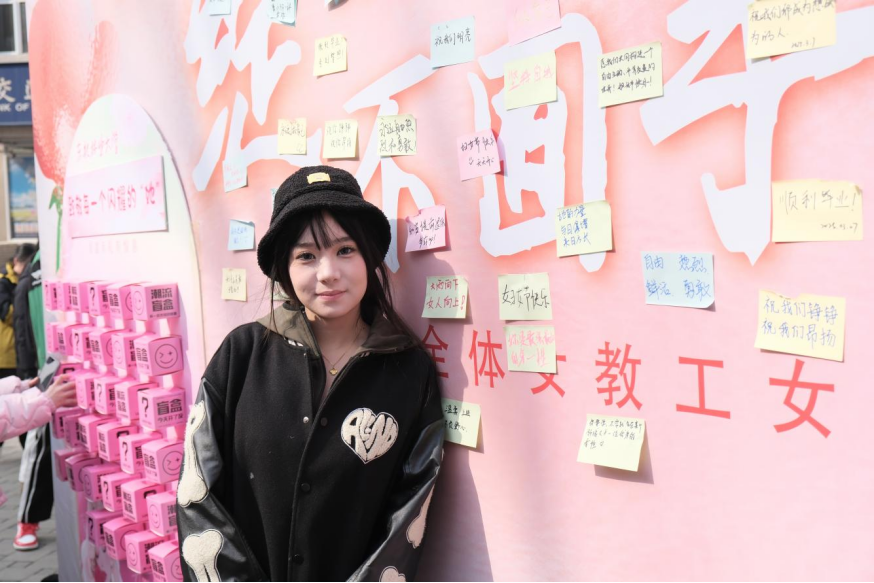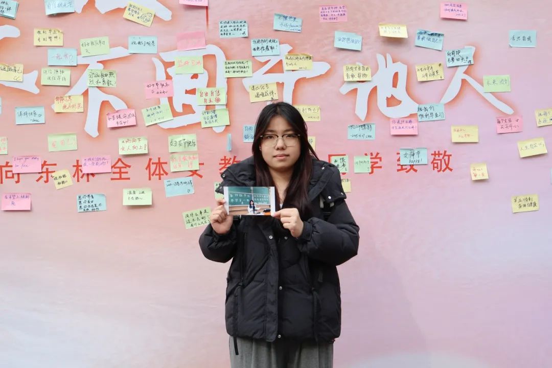 写满祝福的背景墙前