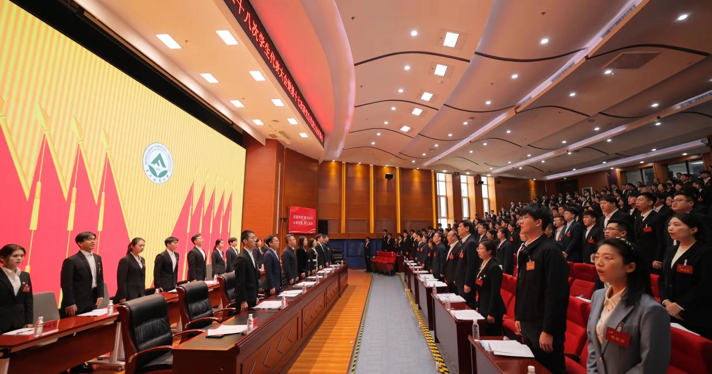 大会伴着庄严的国歌声正式启幕,张春雷同志代表学校党委对大会的召开致以祝贺,向长期关心并支持学校学生会与研究生会工作的上级学联组织及兄弟高校表达谢意,同时向全校青年学生送上亲切问候。他指出,过去一年,学生会、研究生会始终立足中心工作、服务发展大局,在持续强化组织政治性、先进性与群众性建设方面收获了扎实成果。随后,他从“筑牢听党话、跟党走的政治信念”“培育能吃苦、愿奋斗的绿色品格”“展现立潮头、当先锋的时代风采”三个维度,激励全体代表切实扛起党赋予青年的时代重任,践行“以青春之力为中国式现代化挺膺担当”的青春承诺,带领广大青年学生锐意进取、奋勇向前,为将东林建设成具有中国特色、跻身世界一流的林业大学不懈拼搏,在全面建设社会主义现代化国家的新征程中奏响东林青年的时代强音。