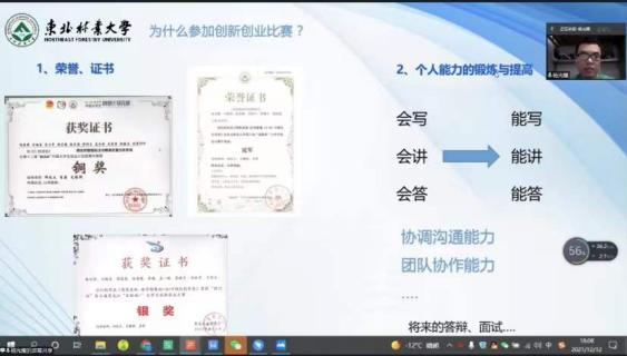 杨光耀结合自身创新创业参赛经验,围绕“什么是创新创业”、“怎样参加创新创业”以及“如何正确看待比赛”等3部分展开了他的分享。他表示:“研究生生涯要规划,更要经营,起点是自己,终点也是自己,没有人能代劳。”创新创业比赛只是一个途径,可以作为课余生活的补充,但对大多数同学来讲只是锦上添花的选项,真正值得在意的是我们从中收获到什么。最后,他表示,只有科学的制定计划、脚踏实地试验科研、孜孜不倦地努力探索,才能取得优异的成绩。