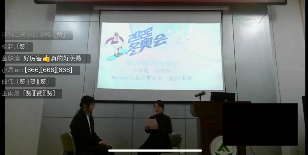 青春正当时,一起向未来。3月6日晚,第173期《成栋讲坛》“开学第一课”特辑在大学生活动中心以线上线下相结合的形式成功举办。园林学院2021级园林专业2班何若玙、经济管理学院2020级国际经济与贸易专业2班荆绚彧、林学院2021级生态学专业1班赵娜等3位同学在直播间里与近千余名师生生动分享了他们在北京冬奥会期间担任志愿者的难忘经历和所获所感。