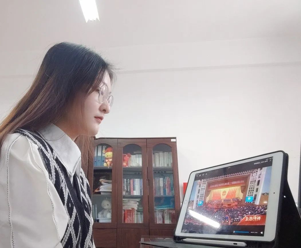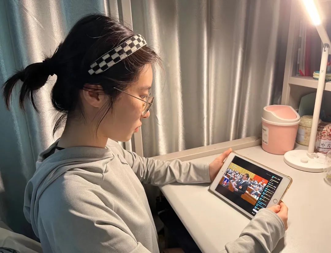在观看两会开幕式期间,我对国家的巨大发展发出由衷赞叹。我深知作为新一代青年,要肩负起时代赋予的责任,身为一名学生会工作人员,我定会以自身实际行动服务身边广大同学,以积极昂扬的姿态迎接新挑战,为献礼母校建校70周年不懈努力,更会为实现第二个百年奋斗目标贡献自己的青春力量!