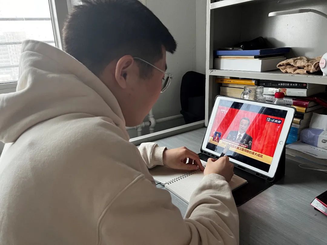 在“两会”直播中看到了我们“十四五”开局之年的良好成绩以及2022年的目标任务,意义重大、催人奋进。作为一名学生会工作人员,我会以“两会”精神为指引,坚定不移地推进学联改革,扎实做好各项工作,不断提升我们的服务水平。以实际行动为党的二十大胜利召开和共青团成立100周年献礼!