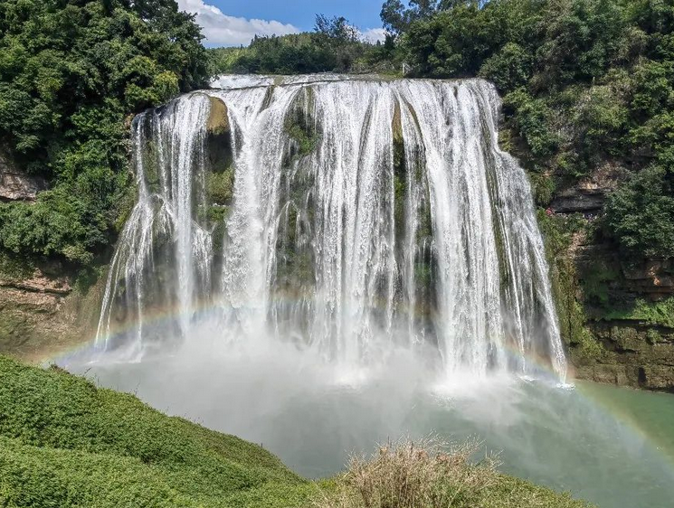 “珠帘钩不卷,匹练挂遥峰”。今天我来为大家介绍一下著名的黄果树瀑布,它的出名始于明代旅行家徐霞客,自那时起,黄果树瀑布就逐渐被人们认为是全国第一瀑布。它位于贵州省安顺市镇宁布依族苗族自治县,以水势浩大著称。它还是八六版西游记里水帘洞、花果山的取景地,被徐霞客评价为“高峻数倍者有之,而从无此阔而大者”。想看喀斯特地貌中的侵蚀裂典型瀑布嘛?快来贵州打卡吧!我相信你也会同我一样,发出‘这简直就是人间仙境’的感叹。