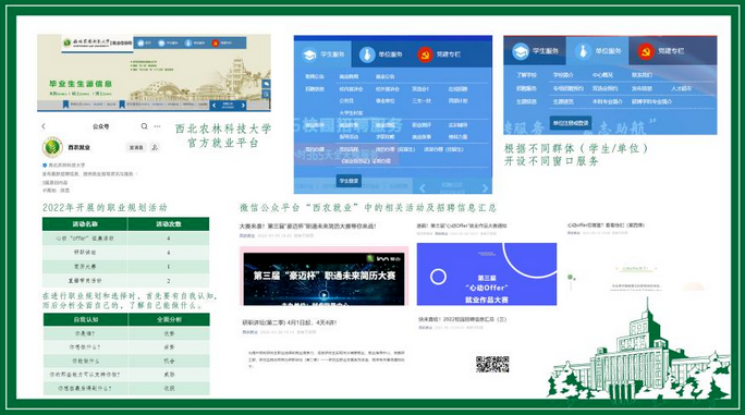 本次社会实践,校研究生会工作人员邵光晴以西北农林科技大学为主要调研对象,通过线上线下相结合的方式开展,主要完成研究生就业信息获取方式等内容,通过合理规划时间、制定计划,分析调研对象在新形势下就业指导、职业规划等方面开展的活动、讲座等内容。在前期调研准备,她发现研究生群体应根据自己的总体目标、发展规划可以采取链条分解法逐层分解,将总体目标分解成一个个具体目标,使自己在每一学年、每一学期都有目标,然后根据具体的小目标,采取相应的具体措施落实,逐一实现,最终完成总体目标。增强实际工作能力,以适应用人单位要求。