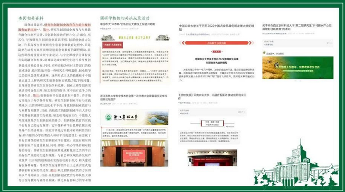 臧胜楠通过与在校同学进行沟通,实时了解该校同学们在创新创业领域的发展与研究。此外,通过采用定性与定量相结合的方法系统地分析目前农林研究生,在创新创业类相关工作中存在的问题及原因,并通过查阅相关文献与专业人员深度访谈,以期做到研究方法和研究结论更加合理和准确。