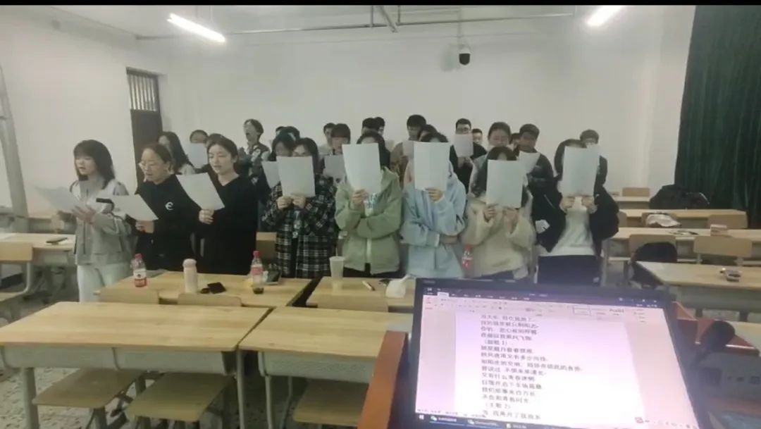 当班歌大赛遇上阶段考,这是让我们最为头疼的一件事,为了保证排练效果,同学们无一例外都牺牲了自己的休息时间,在排练场吃饭、学习、备考……这都是那段时间的真实写照,“我还要多背几页PPT”“稍等,还有两道题就完事了”“抓紧吧,快关寝了”……这是当时同学们说的最多的话,因为歌曲没有伴奏,我们每次排练都要安排专人来回搬运电子琴和便携音响,所有人都任劳任怨、不说苦累。面对备赛和备考的双重压力,同学们马不停蹄、双管齐下,在尊重集体利益基础上,力求个人时间最优化。经过大家的共同努力,我们不仅取得了班歌大赛上的好成绩,每个人的阶段考试成绩也都很理想。现在想想那段时间虽然辛苦,但这也恰恰变成了只属于我们班级的宝贵记忆。