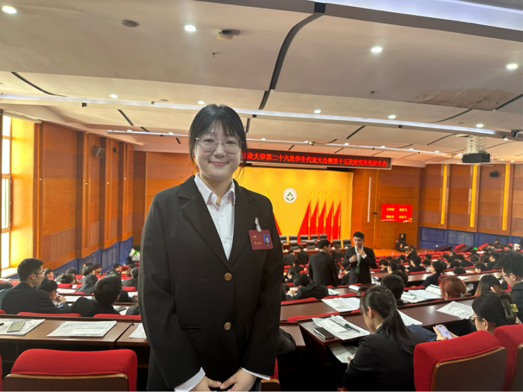 大会期间我认真且严肃地对待每一项议程,深刻感悟学习讲话内容,了解校园内正在发生的变化并对此积极作出回应,这些都让我切实感受到了身为一名学生代表的使命感。同时,我学到很多新观点,这让我看到了学生工作的意义。我为能与这样一群卓越上进的同学们共同奋斗感到骄傲与幸运,也对学校和研究生会的未来发展充满信心。