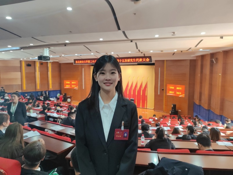 非常荣幸作为研究生代表参加我校第十五次研代会,大会严谨细致的筹备工作、丰富多彩的会议内容、公平民主的选举方式、透明规范的选举流程,都处处透露着学校对学生组织、同学利益的重视。在今后的学生工作中,林学院研究生会将继续与校研究生会加强工作联动,以热心服务同学为宗旨,努力提升自身思想素养与工作能力,为全体同学做实事,为东北林业大学的校园建设贡献自己的一份力量。