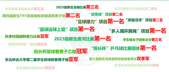 过去一年,奥林学院学生会助力学院打造五色奥林学堂育人保障体系成果显著,在校第五十五届田径暨阳光体育运动会跬步计划中,获三项第一、两项第二、一项第四名的好成绩,最终获得了学生组男女团体总分第四名、女子第三名、男子第五名以及体育道德风尚奖。全年获得了“院长杯”乒乓球比赛团体第一名、新生拔河比赛第一名、院长杯篮球赛男子乙组第一名、秋季校园越野接力比赛亚军、排球联赛男子组亚军、新生简易橄榄球邀请赛男女双季军、2023级新生大合唱比赛第三名、2022级学生大合唱比赛二等奖、羽毛球混合团体赛前四名等荣誉奖励。