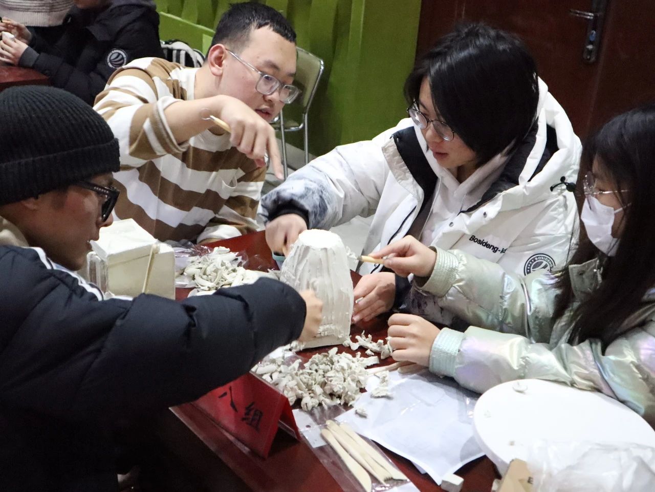 泥膜,作为雪雕的重要一环,是雪雕艺术家们完成创作的关键步骤。12月29日下午,家居学院朱磊、吕金、孙慧良、王可心、高飞等5位专业教师在大学生活动中心指导180位学员,顺利完成了泥膜制作。本次课程分别为20个小组提供15块油泥,3套工具以及1个底座转盘。在制作过程中,学员们用心领会、细心制作,在生动的实践中感受冰雪文化,畅享冰雪魅力。