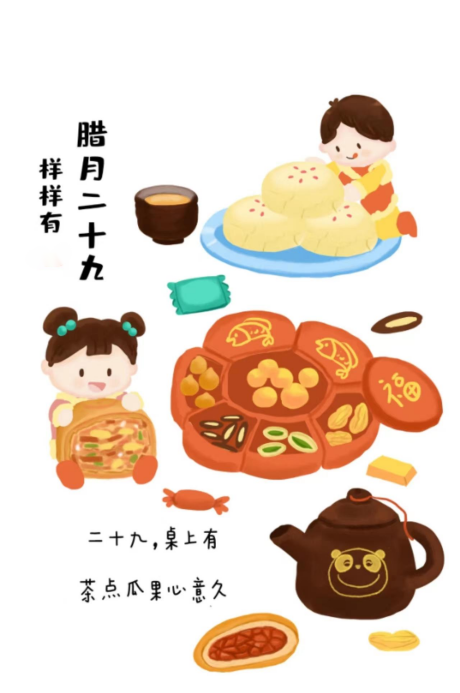 这一天叫“小除夕”,一般是来往拜访,这叫“别岁”,亲戚邻里之间互相交换糕点,交流感情,万事俱备,所有人共同盼望“大年三十”的到来。