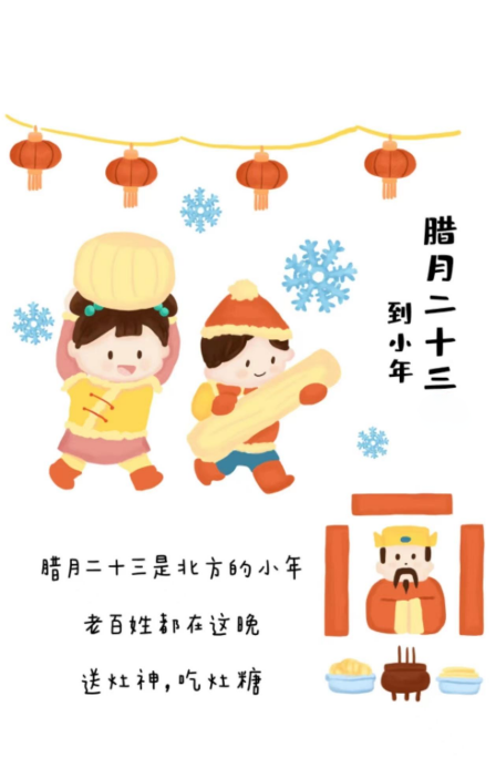 俗称“小年”,传说这日是“灶王爷上天”之日。人们在这一天准备好供品送灶神上天,让灶王上天之后为自己说好话,吃了祭灶的糖瓜,拜了灶老爷,就要热火朝天地投入迎新年的忙碌中了。