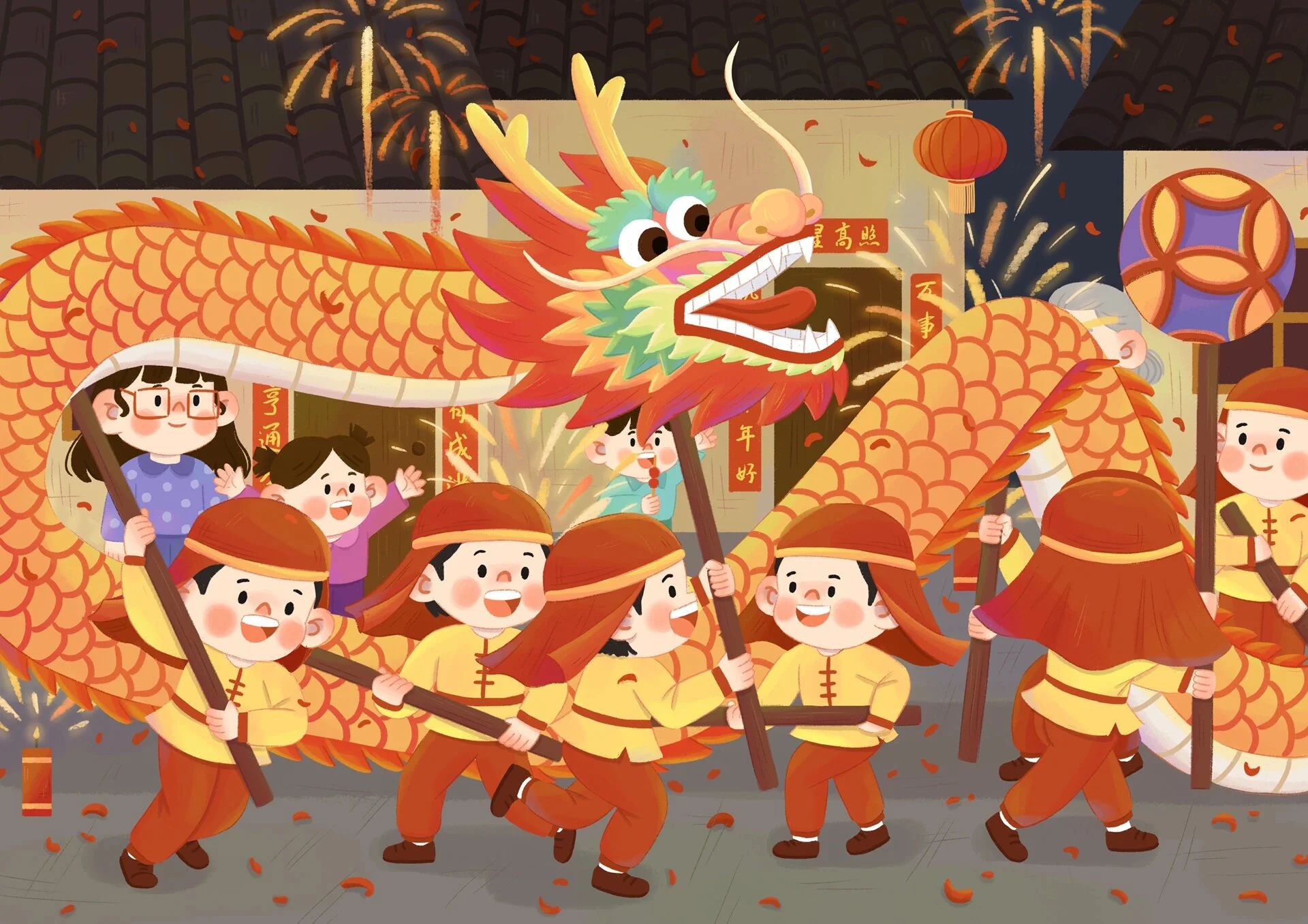 金龙翻舞正飞腾,瑞狮起落海呼啸。龙是中国古老的图腾,狮是威猛、刚劲的象征。在新的一年,人们通过舞龙与舞狮,求得风调雨顺,喜乐安宁,万事胜意,星河长明。