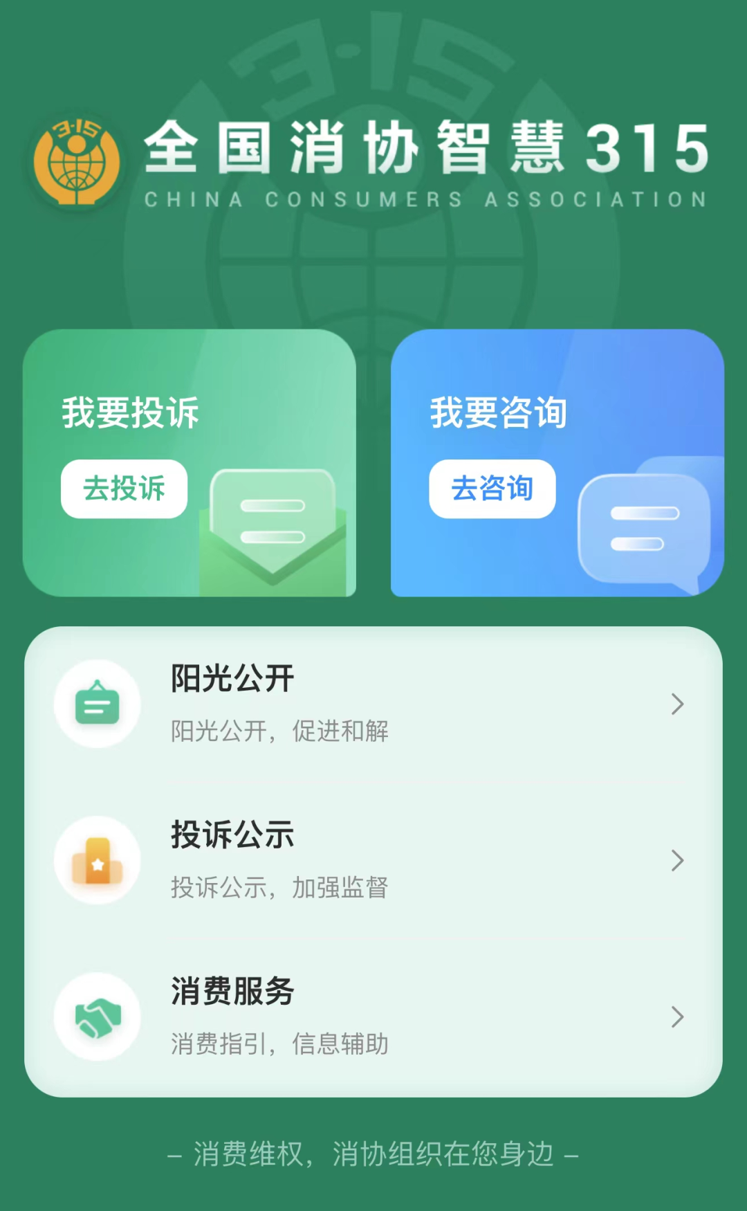 “全国消协智慧315”平台