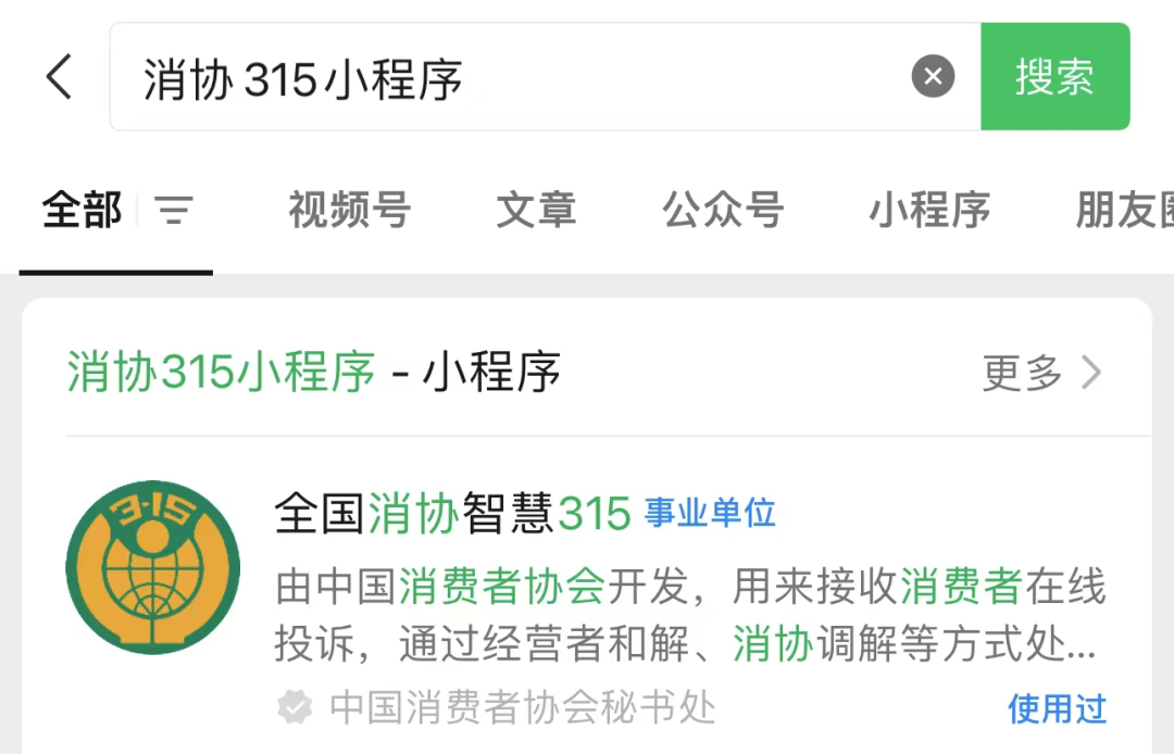 微信搜索“消协315”小程序