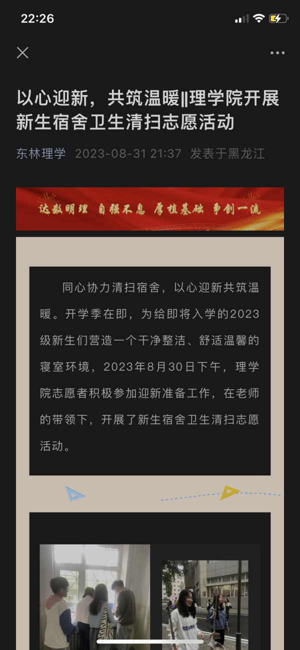 在日常工作中,依托“理廑”志愿服务小组配合学校开展劳动教育活动,在上年度,“理廑”志愿服务小组开展扫雪、打扫教学楼、核酸志愿服务等劳动活动20余次,显著提高同学们的劳动意识和实践能力。同时配合学院做好学生日常安全稳定服务保障工作,切实保障同学们的安全。