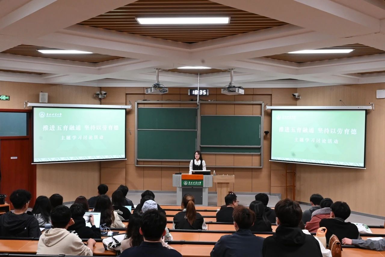 参加“推进五育融通,坚持以劳育德”讨论会,习近平总书记对劳动者的关怀令我深感责任重大。劳模精神、劳动精神及工匠精神的学习,让我认识到每份成就背后的辛勤付出与不懈追求。我们要从日常做起,培养良好劳动习惯,成为生活美化者。在创建文明寝室的过程中,我们要以身作则,带动同学,共创尊重劳动、崇尚技能的环境,为校园和谐与社会进步添砖加瓦。