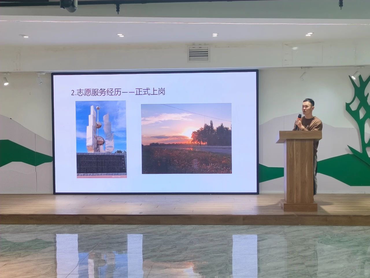 李明达首先介绍了他参与西部计划的原因,随后向我们分享他的志愿服务经历,从岗前培训、正式上岗、开展工作、再到最后的期满离岗,这些经历深化了他对兵团精神和民族团结重要精神的理解,同时,他从兵团概况、岗位专项类别、政策保障3个方面向我们解读西部计划政策。最后,他在分享北疆景色的同时,呼吁我们积极报名西部计划,并投身于志愿服务中去,到西部、到基层、到祖国和人们最需要的地方去绽放青春光彩。