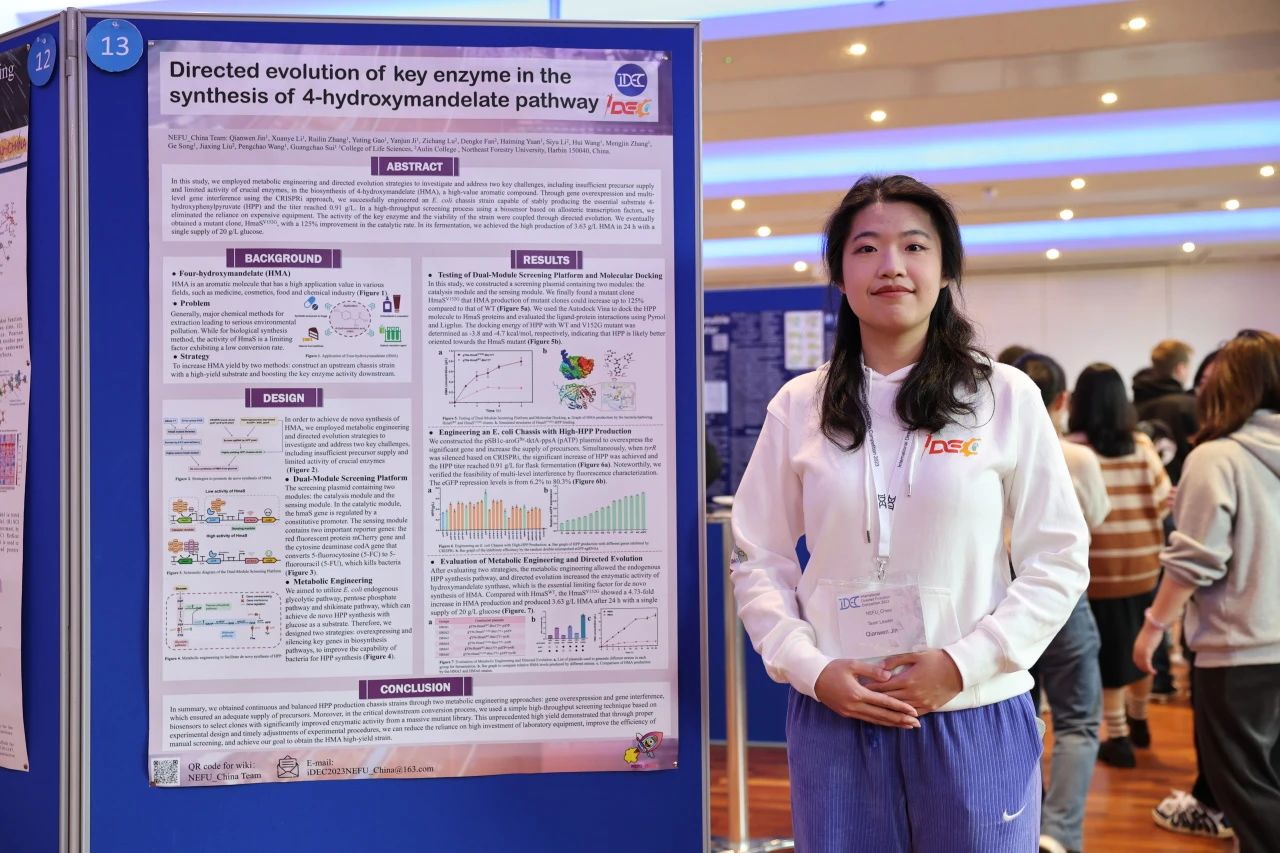 在大二下学期时,靳茜雯作为项目负责人继续参加iDEC竞赛,在这一学年里,她认真思考作为队长所应当承担的责任,帮助各实验组顺利开展研究,对实验室进行管理,及时调整各组实验方向,保证课题的推进和完成。在这一过程中,她在老师和前辈们的帮助下,逐步搭建起以科研学术角度思考问题的体系,可以在细微的实验现象中发现问题所在,带领队员一起解决前路的困难。同时,熟悉使用实验室中常用仪器以及常见的分子实验操作,为未来的科研训练打下坚实的基础。最终团队共同获得了iDEC银奖和7项单项奖。
