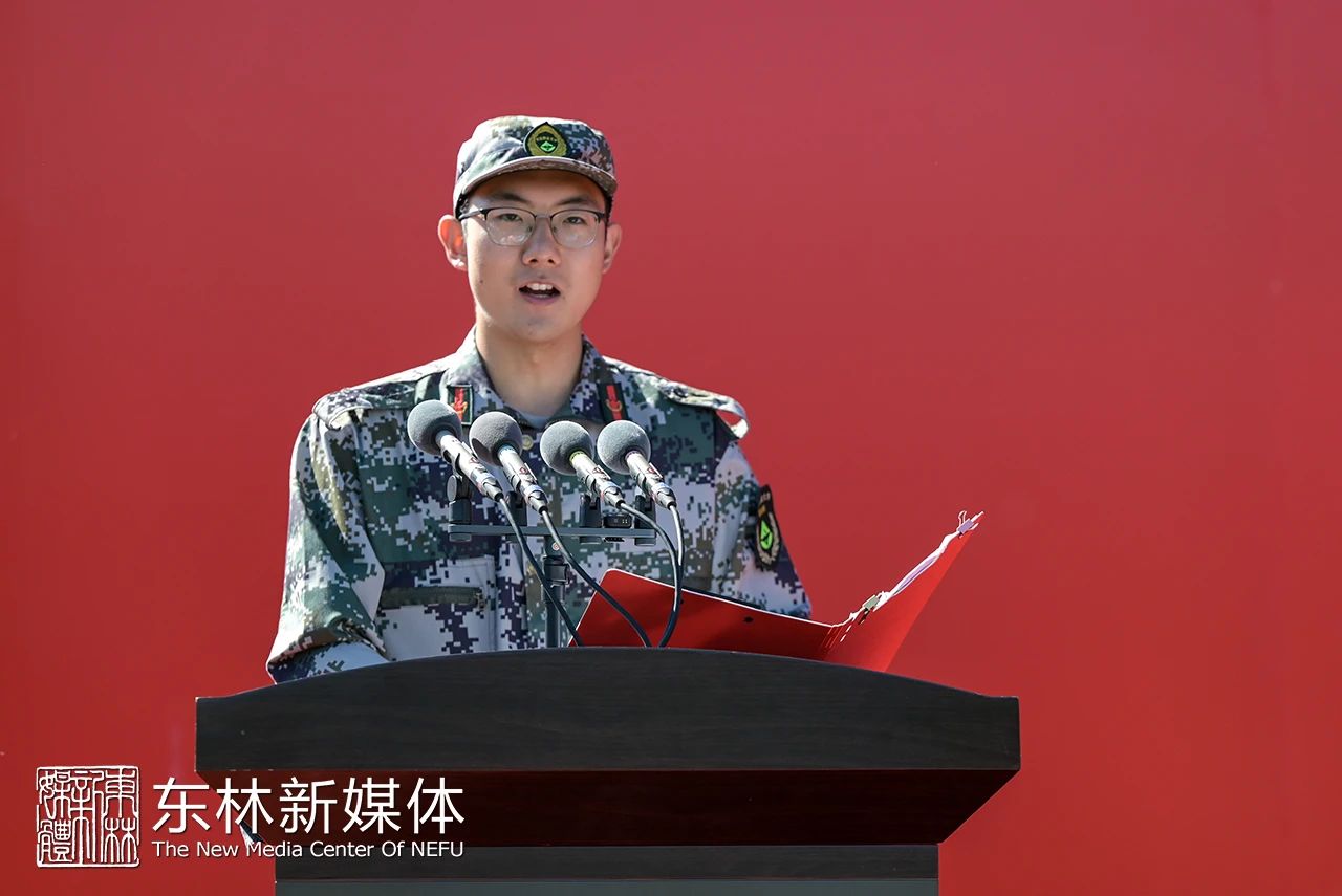 新生代表、野生动物与自然保护地学院野生动物与自然保护区管理专业学生吴海锋代表全体参训新兵作出庄严承诺。
