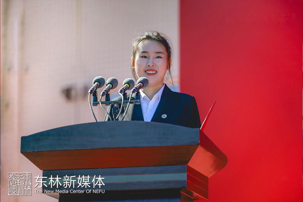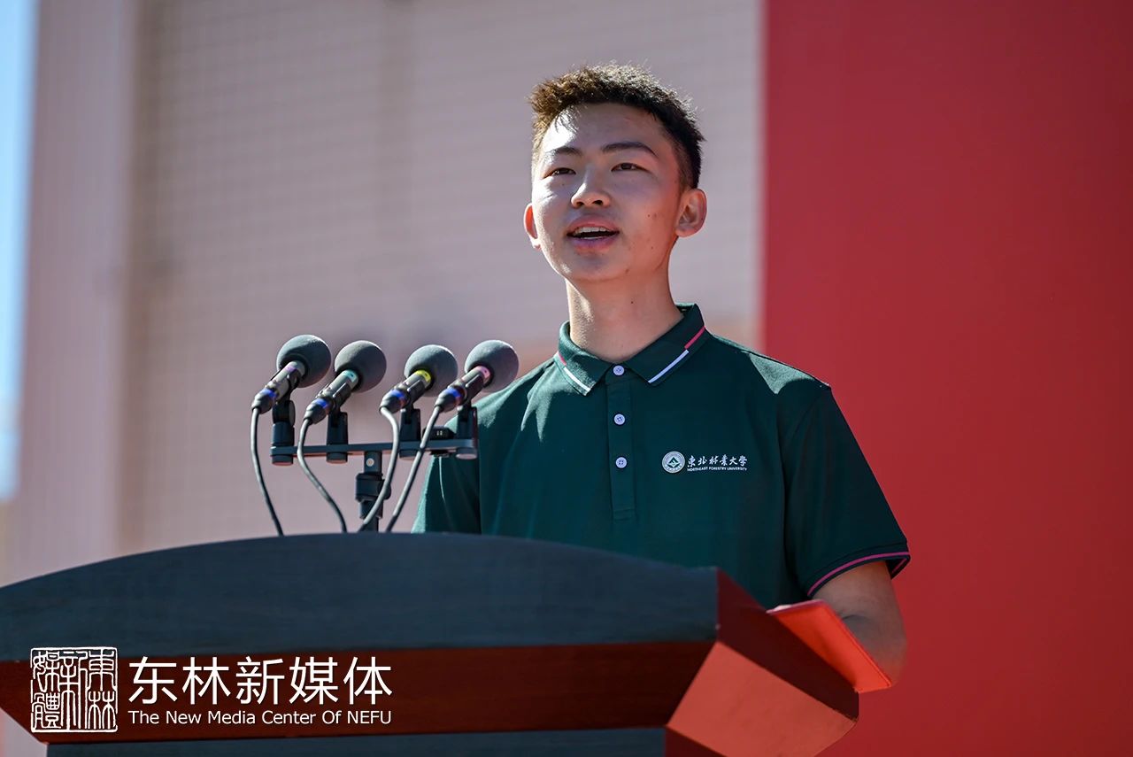 在校生代表、园林学院2022级风景园林专业硕士研究生、黑龙江省学联驻会执行主席、校研究生会执行主席张艾琳同学表示,希望和广大新生一起谱写无悔奋斗的青春之歌,体悟信仰闪光的青春之力,砥砺“绿水青山”的青春之志,让青春在中国式现代化的火热实践中绽放绚丽之花。