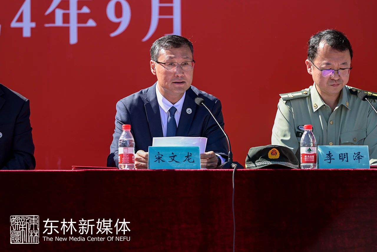 宋文龙以《扎根成长,逐梦追光》为题,寄语东林新生。他向广大新生介绍了东林和一代代东林人背倚林海、艰苦创业的故事,期待大家能够在东林这片沃土,向下扎根、向上成长,努力去领略云天之外的更高处。在新的人生起点上,宋文龙向大家提出三点期望:一是找准方向、怀抱梦想,坚定地扎根成长。希望大家在时代洪流中找准前进坐标,自觉把个人理想追求与国家、民族的前途命运紧紧相连,锤炼品德修为、提升人生境界。二是勤学笃行、创新创造,坚实地扎根成长。希望大家珍惜韶华、苦练本领,让学习成为大学时光里的主旋律;创新求变、攻坚克难,努力在科技创新最前沿施展智慧才干、释放创造潜力。三是青春接力、生态报国,坚韧地扎根成长。希望大家知林爱林、向林取法,脚踏实地、与林偕行,兴林强林、生态报国,携手绘就“无山不绿、有水皆清、四时花香、万壑鸟鸣”的美丽中国崭新图景。他还衷心祝愿2024级全体新同学:在东林启程,健康快乐、扎根成长!
